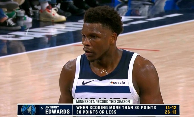 这是啥情况?爱德华兹本赛季30+时14胜12负 30分及以下26胜13负体育集锦